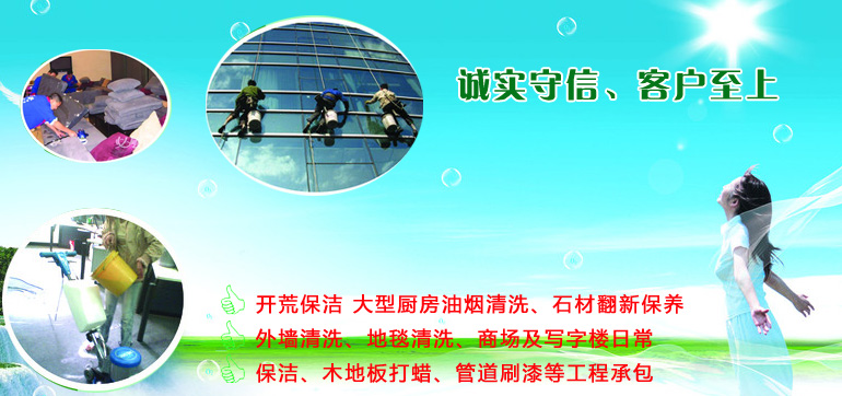 成都尊鼎保潔服務有限公司成立于2012年10月,注冊資本為人民幣100萬元。公司人員都是從事保潔行業多年的專業人員,公司通過多方面的發(fā)展,已經形成以商業清洗為主、家庭清潔為輔,兼營酒店用品的綜合性服務企業,公司管理完善,組織機構建全,設有總經辦、綜管部、財務部、工程部、保潔部、人力資源部等十多個專項管理部門。強有力的為商業樓宇、****及市場、機關單位、醫(yī)院學校、家居環(huán)境等場所提供涵蓋日常保潔、開荒清潔、石材護理、外墻清洗、酒店用品銷售等服務項目。現已擁有員工近百名,綜合管理人員多名、專業技術人員多名。公司成立至今,始終堅持 “客戶至上、信譽****”的服務宗旨,秉承“為客戶節(jié)約多一分,讓客戶滿意多一分”的經營理念,不斷強化細節(jié)意識和商業信譽建設,在贏得較大客戶市場的同時,廣受業內外贊許。 |